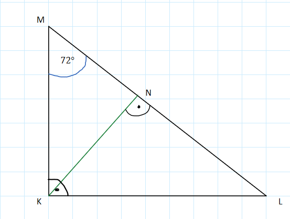 |∢KLM| = 180˚ - 90˚ - 72˚ = 18˚