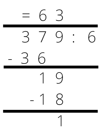 Oblicz. Możesz podzielić pisemnie. 379 dzieli się przez 6 z resztą.