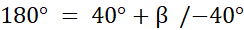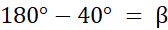 Kąt 40° i β to kąty przyległe. Razem tworzą kąt półpełny o mierze 180°.