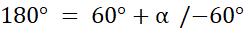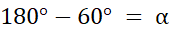 Kąt α i 60° w sumie tworzą kąt półpełny, który ma 180°, więc miara kąta α musi być równa 120°.