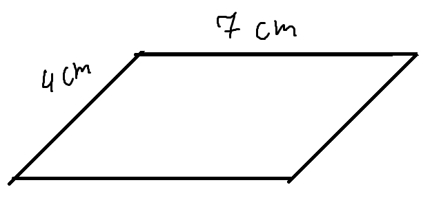 Narysuj bok o długości 7 cm oraz bok o długości 4 cm. Kąt między nimi musi być ostry lub rozwarty. Jeżeli masz kartkę w kratkę, to użyj samej linijki do stworzenia dwóch pozostałych boków. Jeżeli karta jest biała, spróbuj wykonać konstrukcję. Za pomocą cyrkla odmierz 7 cm i wbij cyrkiel w ,,wolny” (taki, że nie ma tam jeszcze wierzchołka figury) koniec odcinka o długości 4 cm i narysuj łuk. Następnie odmierz odcinek o długości 4 cm i wbij cyrkiel w ,,wolny” koniec odcinka o długości 7 cm i narysuj łuk. Miejsce przecięcia łuków to wierzchołek równoległoboku. Połącz wierzchołki.
