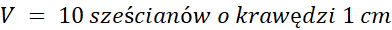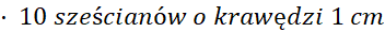 10 sześcianów o boku 1 cm razy 10 sześcianów o krawędzi 1 cm =