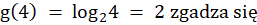 Punktami do nich symetrycznymi względem prostej y = x są: (1, 0), (2, 1), (4, 2), (8, 3).