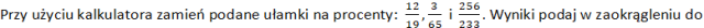 Aby zamienić ułamki zwykłe na procenty, najpierw zamień je na ułamki dziesiętne, a następnie pomnóż razy 100%.