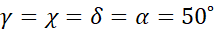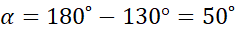 β i 130⁰ to kąty wierzchołkowe, więc ich miary są równe. α i β to kąty przyległe, więc ich suma daje 180⁰. Analogicznie, α oraz γ to kąty wierzchołkowe. Ponieważ proste m i n są równoległe, miary kątów odpowiadających będą takie same (np.