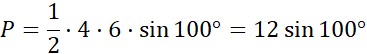 W tym zadaniu oblicz pole trójkąta, którego boki mają długości 4 i 6, a kąt między tymi bokami ma 100˚.