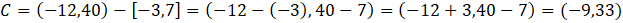 Aby znaleźć współrzędne punktu C, od współrzędnych punktu D musisz odjąć współrzędne wektora