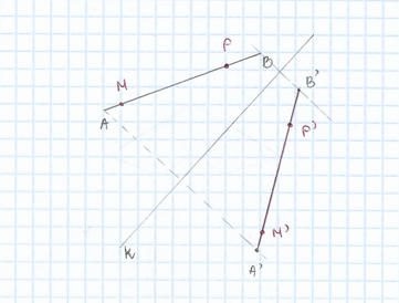 Aby narysować odcinek symetryczny względem prostej, wystarczy znaleźć jego końce, czyli punkty symetryczne, a następnie je połączyć.