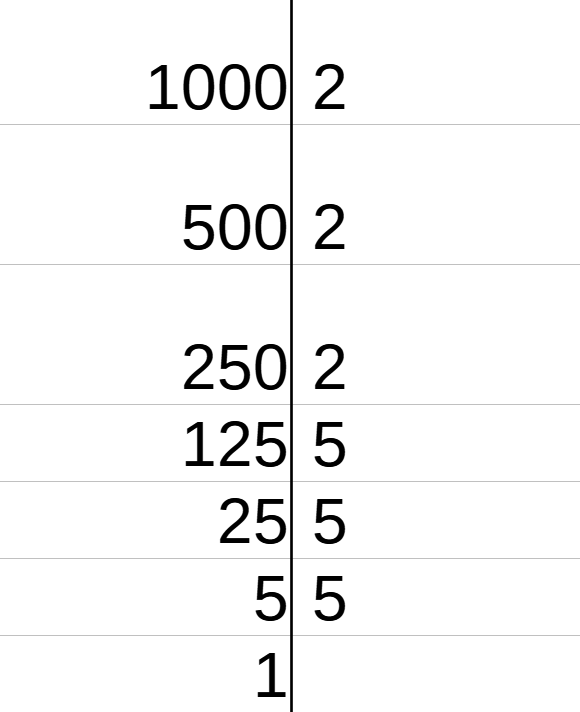 W tym zadaniu musisz dokonać rozłożenia liczb 15 i 1000 na czynniki pierwsze, czyli zapisać je w postaci mnożenia liczb pierwszych. Liczba pierwsza to taka, która ma dokładnie 2 dzielniki: 1 i siebie samą.