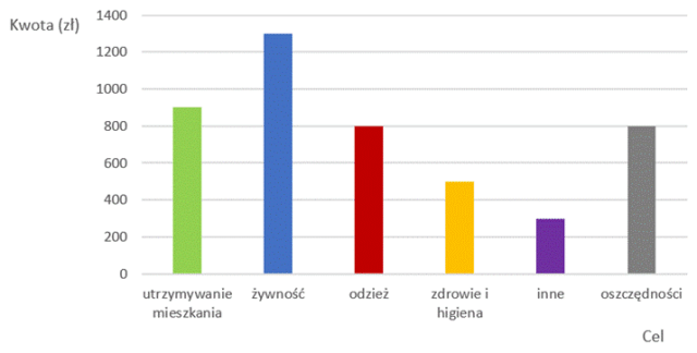 Narysuj diagram i zapisz cel, na który państwo Markowscy przeznaczyli najwięcej pieniędzy oraz cel, na który przeznaczyli najmniej.