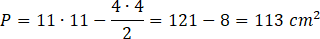 Pole narysowanej figury obliczysz przez odjęcie pola trójkąta prostokątnego o przyprostokątnych długości