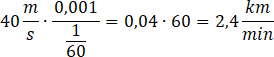 Zamień jednostki, skorzystaj z tego, że 1 m = 0,001 km oraz 1 min = 60 s.