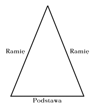 Boki mające takie same długości w trójkącie równoramiennym nazywamy ramionami, a trzeci bok ma nazwę podstawa. W trójkącie prostokątnym boki leżące przy kącie prostym to przyprostokątne, a bok naprzeciw kąta prostego to przeciwprostokątna.