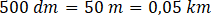 Zamień jednostki: 1 dm to 0,1 m i 0,0001 km.