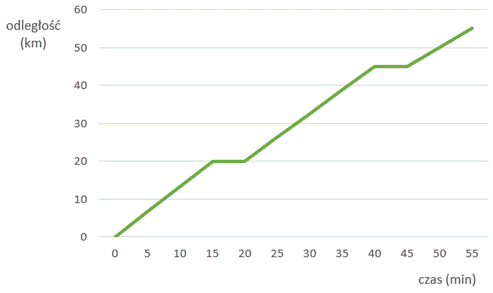 Narysuj wykres odległości pociągu od początkowej stacji w miarę mijającego czasu.