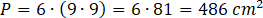 , gdzie a, b, c to wymiary prostopadłościanu. Podany prostopadłościan ma wszystkie krawędzie równej długości- jest więc sześcianem. Wzór na pole powierzchni sześcianu: