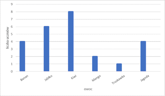 To zadanie musisz wykonać samodzielnie. Wraz z koleżankami i kolegami musicie wybrać jedno z pytań i przeprowadzić ankietę. Na podstawie jej wyników musicie narysować wykres.