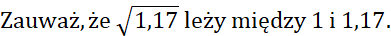 wstaw odpowiedni znak. Oszacuj wartości pierwiastków.