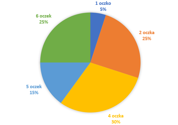 Sporządź procentowy diagram kołowy dla podanego doświadczenia.