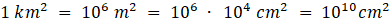 Odpowiedz na podane pytanie, posługując się notacją wykładniczą: Ile centymetrów kwadratowych jest w kilometrze kwadratowym?