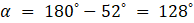Kąt α i 52˚ s a kątami przyległymi, więc: