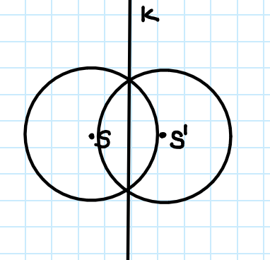 Narysuj okrąg, prostą przechodzącą i przecinającą go w dwóch punktach, a następnie odbij obraz okręgu tak, aby był symetryczny względem danej prostej.