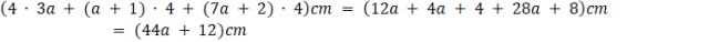 Oblicz w zeszycie sumę długości krawędzi prostopadłościanu o podanych wymiarach: 3a cm (a + 1) cm, (7a + 2) cm.
