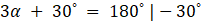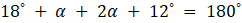 Suma miar kątów w trójkącie jest równa 180˚, ułóż równanie i wylicz α: