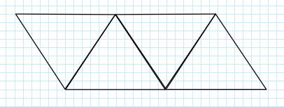 Narysuj cztery przystające bokami do siebie trójkąty równoboczne o boku równym 6 cm.