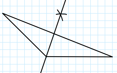 Narysuj dowolny trójkąt rozwartokątny równoramienny z dwusieczną kąta rozwartego.