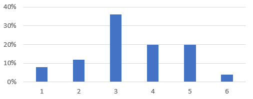 Wszystkich ocen było 25, oblicz zatem wartości liczbowe poszczególnych ocen, mnożąc wartość procentową danej oceny przez 25.