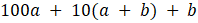 Liczba trzycyfrowa, w której cyfra dziesiątek jest równa sumie cyfr jedności i setek jest przedstawiona w postaci