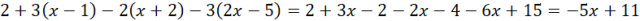 Zredukuj przedstawione wyrażenie poprzez opuszczenie nawiasów (pamiętaj, że mnożenie liczby przez nawias to mnożenie każdego elementu nawiasu przez daną liczbę) i redukcję wyrazów podobnych (sumowanie wyrazów o takiej samej kombinacji liter i ich potęg).