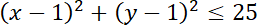 W tym zadaniu musisz wyznaczyć nierówność, która opisuje koło o środku w punkcie S(1, 1) i o najmniejszym polu, jeśli należy do danej figury P(5, -2).
