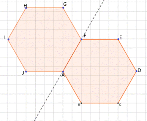 W tym zadaniu musisz narysować sześciokąt foremny oraz jego obraz w symetrii w stosunku do danej prostej