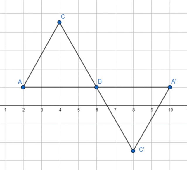 W tym zadaniu musisz narysować trójkąt równoboczny ABC i przekształcić go symetrycznie względem wybranego wierzchołku.
