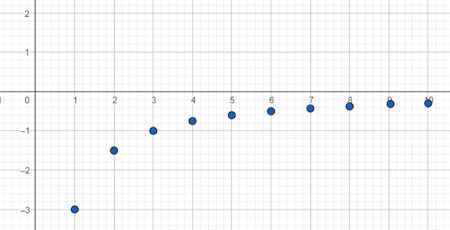 Zauważ, że kolejne wyrazy coraz bardziej zbliżają się do 0, zatem granica ciągu wynosi: