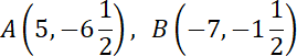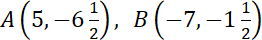 Twoje współrzędne punktu A to (5, -6, 0,5), a współrzędne Twojego punktu B to (-7, -1, 0,5).
