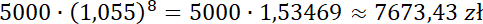 Do banku złożono kapitał 5000 zł przy oprocentowaniu 5,5%. Jaką kwotę otrzymasz po 8 latach?