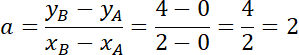 – współrzędne punktu B. Zauważ, że skoro odcięta drugiego punktu wynosi 2, to rzędna ma wartość 4.