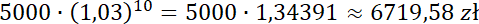 Do banku złożono kapitał 5000 zł przy oprocentowaniu 3%. Jaką kwotę otrzymasz po 10 latach?