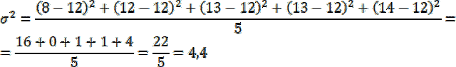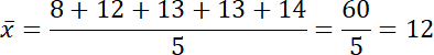Mając dane liczby: 8, 12, 13, 13, 14 oblicz wariancję i odchylenie standardowe.