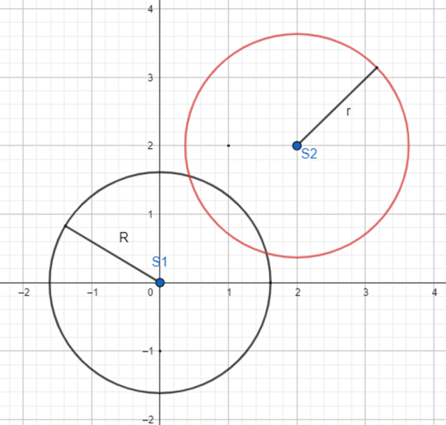 Narysuj na płaszczyźnie kartezjańskiej dwa okręgi: