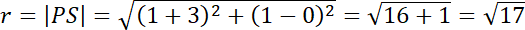 . Oblicz długość |PS| ze wzoru na długość odcinka. Następnie znając współrzędne środka koła i długość promienia zapisz nierówność opisującą koło.