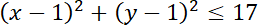 W tym zadaniu musisz wyznaczyć nierówność, która opisuje koło o środku w punkcie S(1, 1) i o najmniejszym polu, jeśli należy do danej figury P(-3, 0).