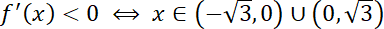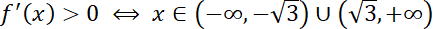 Najpierw wyznacz pochodną funkcji f oraz określ dziedzinę tej funkcji, oraz jej pochodnej. Następnie wyznacz miejsca zerowe pochodnej. Zauważ, że skoro współczynnik a jest dodatni, to wykres wielomianu zaczynasz rysować z prawej strony nad osią OX. Na tej podstawie określ znak pochodnej. Skorzystaj z faktu, że gdy jest on dodatni, to funkcja jest rosnąca, a gdy ujemny – funkcja jest malejąca.