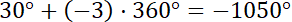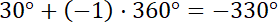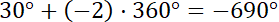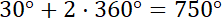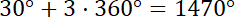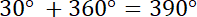 (patrz na rysunek). Kąty to: 390°, 750°, 1100°, 1470°, -330°, -690°, -1050°, -1400°.