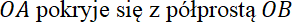 Żeby półprosta OA pokryła się z półprostą OB, możemy obrócić ją o kąt: