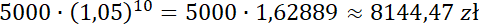 Na lokatę o oprocentowaniu 5% w skali roku, wpłacono 5000 zł. Ile wyniosą odsetki po 10 latach? Sprawdź, o ile zmieni się wysokość kapitału, jeśli pobrany zostanie podatek od odsetek w wysokości 20% rocznie.