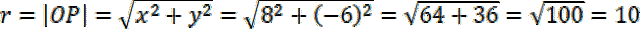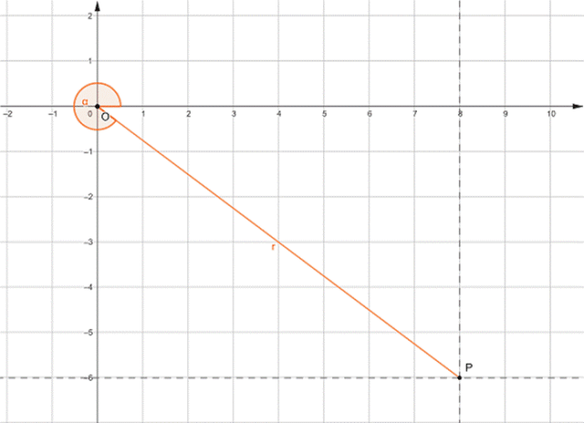 Na rysunku przedstaw kąt i oblicz wartości funkcji trygonometrycznych dla tego kąta, przyjmując punkt .
